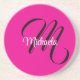 Minimalistic modern monogram initial name hot pink coaster
