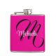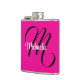 Minimalistic modern monogram initial name black white. Personalizable custom name with a cursive initial behind on a hot pink color.