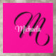 Minimalistic modern monogram initial name black white. Personalizable custom name with a cursive initial behind on a hot pink color.