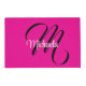 Minimalistic modern monogram initial name black white. Personalizable custom name with a cursive initial behind on a hot pink color.