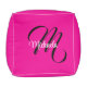 Minimalistic modern monogram initial name black white. Personalizable custom name with a cursive initial behind on a hot pink color.