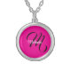 Minimalistic modern monogram initial name hot pink silver plated necklace