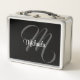 Minimalistic modern monogram initial name black white. Personalizable custom name with a cursive initial behind on a black color.