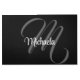 Minimalistic modern monogram initial name black white. Personalizable custom name with a cursive initial behind on a black color.