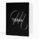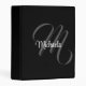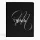 Minimalistic modern monogram initial name black white. Personalizable custom name with a cursive initial behind on a black color.