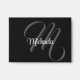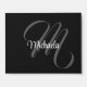 Minimalistic modern monogram initial name black white. Personalizable custom name with a cursive initial behind on a black color.