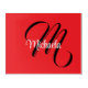 Minimalistic modern monogram initial name black white. Personalizable custom name with a cursive initial behind on a red color.