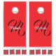 Minimalistic modern monogram initial name red cornhole set