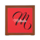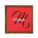 Minimalistic modern monogram initial name black white. Personalizable custom name with a cursive initial behind on a red color.