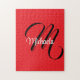 Minimalistic modern monogram initial name red jigsaw puzzle