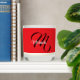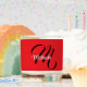 Minimalistic modern monogram initial name black white. Personalizable custom name with a cursive initial behind on a red color.