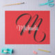 Minimalistic modern monogram initial name black white. Personalizable custom name with a cursive initial behind on a red color.