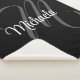 Minimalistic modern monogram initial name black white. Personalizable custom name with a cursive initial behind on a black color.