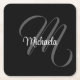 Minimalistic modern monogram initial name square paper coaster