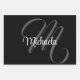 Minimalistic modern monogram initial name black white. Personalizable custom name with a cursive initial behind on a black color.