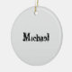 Lightweight, smooth, pure white ornament with nice sheen. Perfect size to be seen from across the room ... and to attract closer inspection! Price was great for ordering enough for the whole family! Clear, bold black design just as requested. Matches the order exactly. Just so nice!