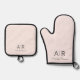 Minimalistic Monogram Initial & Name Pastel Pink Oven Mitt & Pot Holder Set