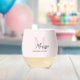 Minimalistic Monogram Initial & Name Pastel Pink Stemless Wine Glass