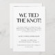 Minimalistic Black & White Photo "We Tied the Knot!" Wedding Elopement & Reception Invitation. Personalize with your elopement message, bride and groom names, elopement date, a wedding photo on the back, and your "happily ever after party" wedding reception invite info for family and friends.