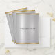 Elegant shiny slick metallic silver texture, stainless steel look with gold border accents, business binder template—customizable typography in black.