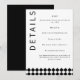 Having your Minimalistic Wedding Details Card match the theme of your party is a great detail that your guests will appreciate. The thoughtfulness of a consistent party theme is often appreciated and can show your guests that you can host a cohesive event.