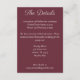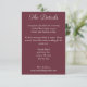 This must-have details card features the title in a lively script and your details in a modern serif font. This is the perfect place to note accommodations and other pertinent wedding information. The back features your wedding date.