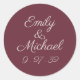 These stickers feature your names against a vibrant color background. Part of the Minimalst Script Purple Plum Collection.