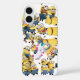 This phone case has a variety of fun minions on the case! White case with minions on it for iPhone 16.