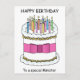 A large cartoon birthday cake covered in candles against a white background. The words 'Happy Birthday to a special Minister' accompany the image.