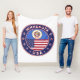 Badge of Minnesota with flag of Minnesota and flag of USA colors, rounded shape.