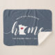Show some home state pride with this cute rustic blue throw blanket featuring "home" in white calligraphy script lettering with a silhouette map of the state of Minnesota standing in for the letter "O." A red heart illustration inside the state map completes the design; you can change the position of the heart to your home city by opening the design tool and dragging the heart shape to your favorite spot. Personalize with your home city, family name and year established to create a perfect and memorable housewarming gift or addition to your new home.