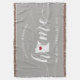 Show some home state pride with this cute rustic gray throw blanket featuring "home" in white calligraphy script lettering with a silhouette map of the state of Minnesota standing in for the letter "O." A red heart illustration inside the state map completes the design; you can change the position of the heart to your home city by opening the design tool and dragging the heart shape to your favorite spot. Personalize with your home city, family name and year established to create a perfect and memorable housewarming gift or addition to your new home.