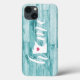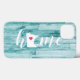 Show some home state pride with this cute rustic turquoise faux wood phone case featuring "home" in white calligraphy script lettering with a silhouette map of the state of Minnesota standing in for the letter "O." A pink heart illustration inside the state map completes the design; you can change the position of the heart to your home city by opening the design tool and dragging the heart shape to your favorite spot!