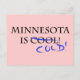 A funny design that reads Minnesota is cool! and cool is crossed out and replaced, in blue ink, by the word cold! Everyone knows Minnesota has tough winters with lots of snow and freezing temperatures, but it's also an eclectic place with nature, beautiful cities, a lively music scene, and 10,000 lakes.
