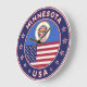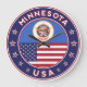 Badge of Minnesota with flag of Minnesota and flag of USA colors, rounded shape.