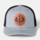 Custom Leather Patch Hat, Sytle: Adult Retro Trucker Cap, Color: Heather / Black, Shape: Circle