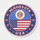 Badge of Minnesota with flag of United States colors, rounded shape.