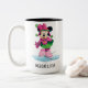 Minnie Mouse in her cute pink and green ice skating outfit.