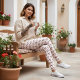 The dainty interlinked rosette design at the waist is truly unique. The poly-spandex makes for a nice fit and available in sizes 0-16. The printing is vibrant and eye-catching.