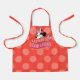 Great color and even though I ordered the kid size, it covers well enough to use during the holidays. I am not a big woman and prefer a shorter apron. I stand 5"6" and the length of the garment goes to mid-thigh. The tie straps fit well at my waist and even though there is no neck strap adjustment, the opening is plenty big enough. I am happy with the size and fit. I am sharing my apron with my 10 year old grandson, too! The color is vibrant and looks good, as shown on the website. The stitching looks strong and reinforced. Photographed is front side and back side of the apron, reinforced straps and coloring. My phone camera may not be the best at showing the details.