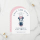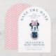 Announce your little lady's upcoming celebration with this sweet and sophisticated Disney Minnie Mouse Save the Date! This trendy, arch-shaped design features a charming illustration of Minnie sitting prettily with her chin in her hands, wearing her signature pink bow and shoes. The crisp white background is contrasted by elegant navy blue typography, creating a modern look that is fully customizable with the guest of honor's name, date, and location. It is the perfect blend of classic Disney charm and contemporary style for a baby girl's shower.