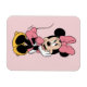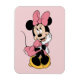 This cute graphic features Minnie Mouse posing in a pink dress and bow.