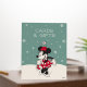 This super cute Minnie Mouse design features her dressed in a winter outfit, including a red hat and scarf with white polka dots. She is smiling and striking a playful pose with one hand on her face and the other pointing outward. Add this"Onederful" product to your child's winter birthday celebration!