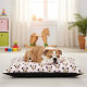 My dog instantly fell in love with this bed. It's super soft and plush. She hasn't stopped laying on it and even when I move it, she jumps on it and gets moved with it. The removable cover is easy to take off and wash. Highly recommend this and it makes a great gift. Fanstastic printing. The colors are 100% accurate and bold.