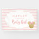 It's a girl! Customize this super cute Minnie Mouse pink and white striped faux gold glitter Baby Shower banner with your name.