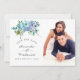 Mint and blue boho floral wedding save the date card with peacock feathers designed to be quickly and easily customized for your special day.