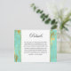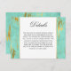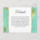 A wedding details card in lovely contemporary style to provide your wedding guests with all the info they'll need surrounding your wedding day. Give them directions to the wedding, hotel information, your wedding web site, special events or any other pertinent information they'll need for the big day. This details card has a mint and gold abstract marbled pattern with faux foil gold veining. Edit the sample text with your specifics. You can move the text to re-center it after making your changes.