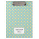 Mint and Gold Faux Glitter Dots Personalized Clipboard