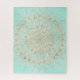 Elegant, stylish bohemian mandala, trendy tribal flower, shining, faux golden foil texture, white watercolor small brush strokes paint on a mint background. Dots, stripes, triangles, geometric shapes. Mandala floral, mystical, dreamy, henna, spring, summer bright colors. Feminine, girly, elegant, chic, trendy, simple, fashion, artistic, art, artwork