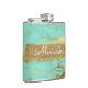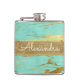 Mint Teal Blue and Marble with Gold Foil and Glitter Elegant Monogram Flask. This Flask can be customized to include your initial and first name. This Flask is perfect for a birthday or bachelorette party celebration.